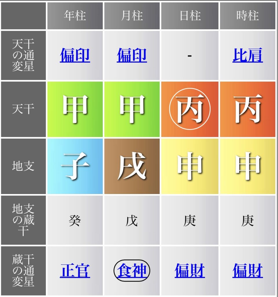 - 丙にとって申(金)は 偏財の根 となり、人との交流・ネットワーク・応援者を意味します。