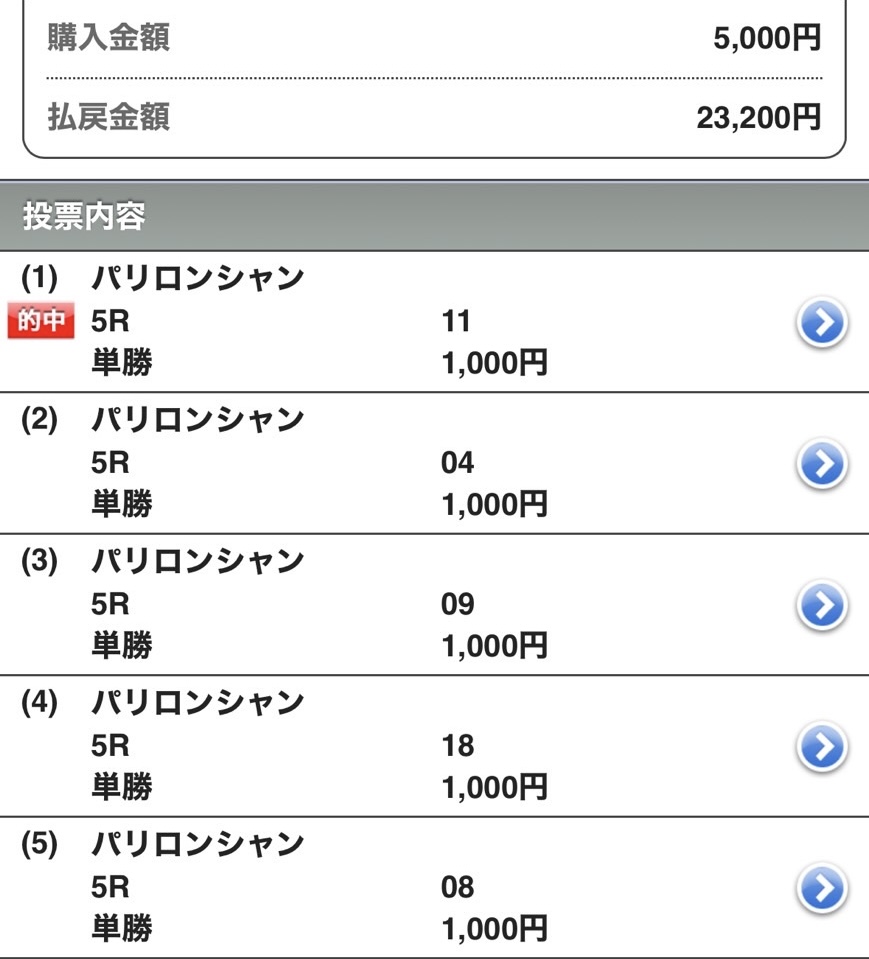 購入金額5,000円に対して、払戻金額は23,200円!