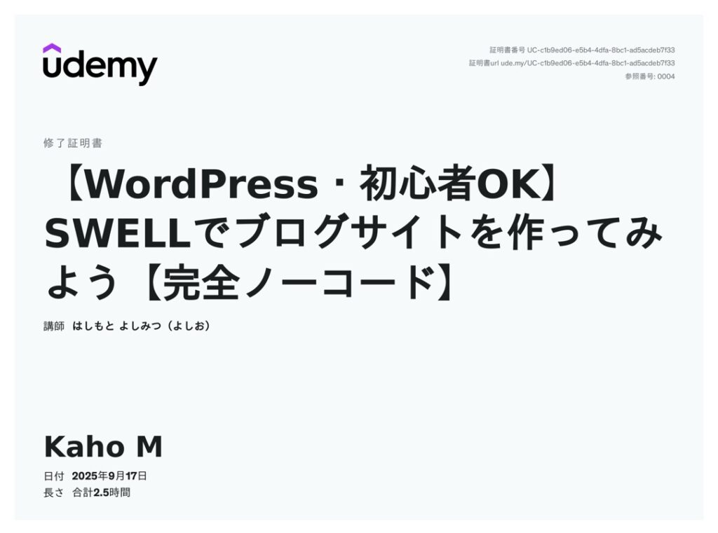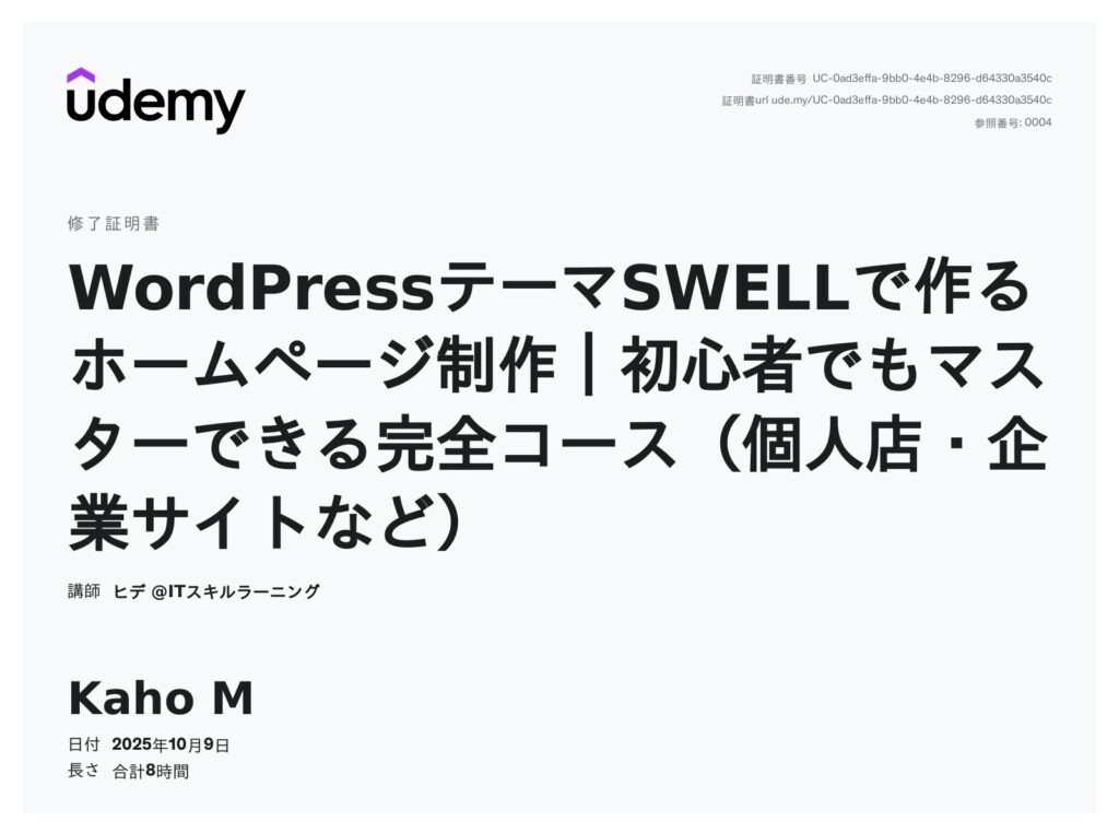 ・WordPressテーマSWELLで作るホームページ制作|初心者でもマスターできる完全コース(R7.10.9)